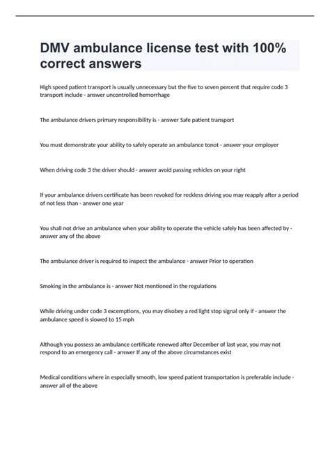 Dmv Ambulance Test Answers Reader By Click Button. Dmv Ambulance Test Answers it’s easy to recommend a new book category such as Novel, journal, comic, magazin, ect. You see it and you just know that the designer is also an author and understands the challenges involved with having a good book. You can easy klick for detailing book and you can read it online, even you can download it